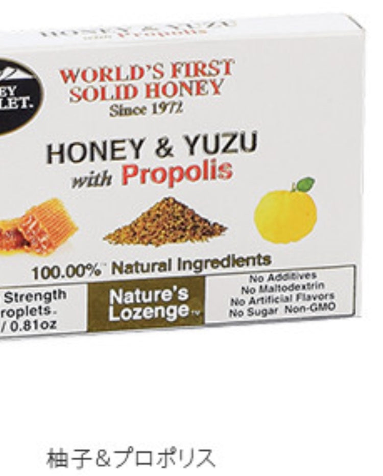 蜂蜜、柚子果汁、プロポリスエキスだけで固めたのど飴。