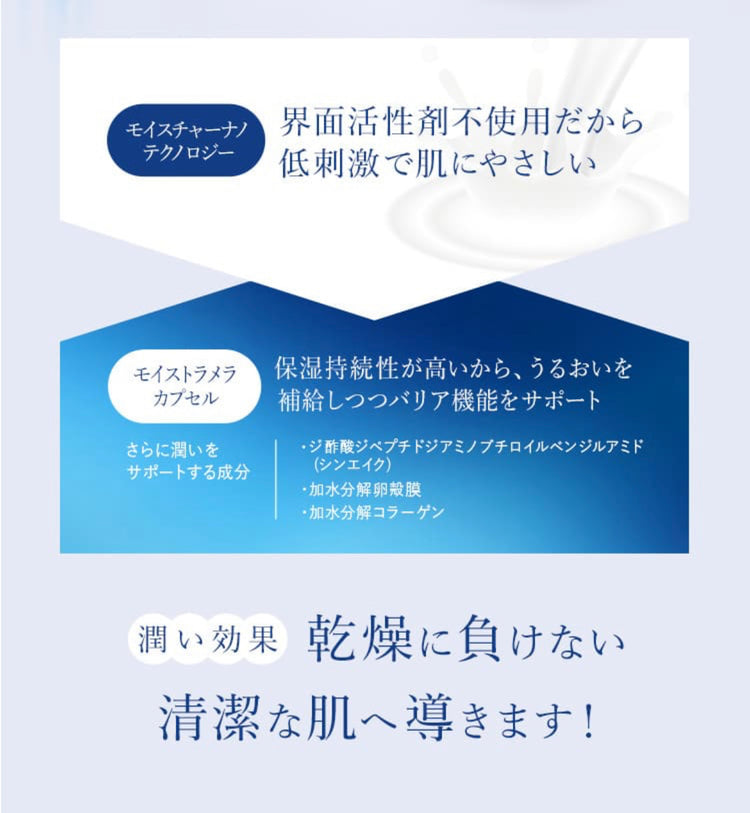 肌の構造と同じ「モイストラメラカプセル」配合でみずみずしく高浸透なスキンケアエッセンスです。
