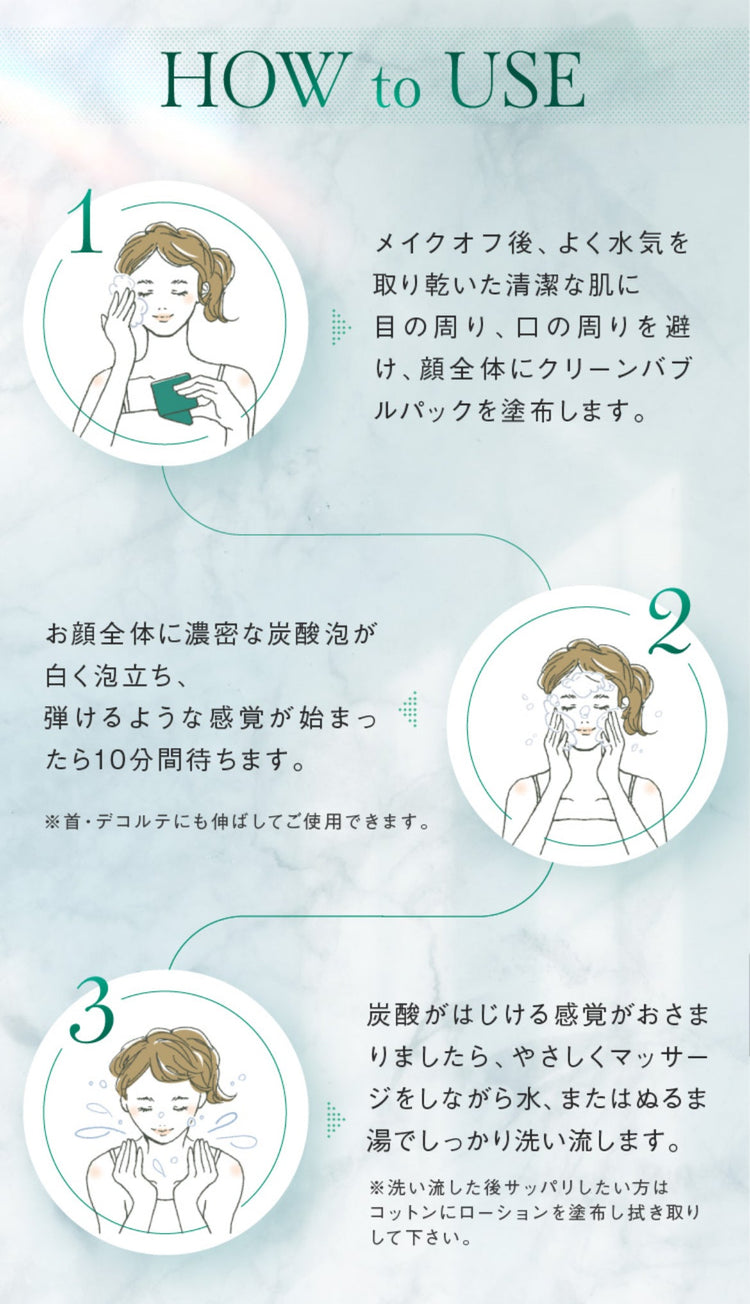 美容成分を含んだ低刺激な炭酸泡なので繊細な肌にも使用でき、みずみずしく、くすみのない健やかな美肌へ導きます。