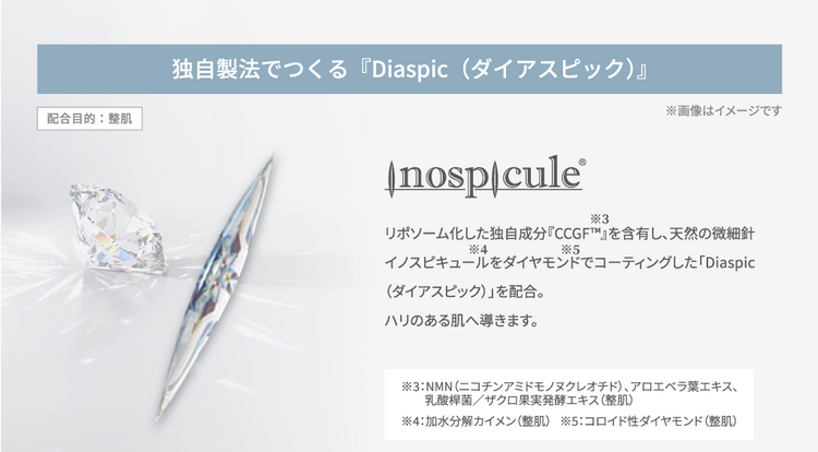 新たな原料「CCGF™」*¹を配合したダイヤモンドコーティング*²のイノスピキュール*³を配合。
