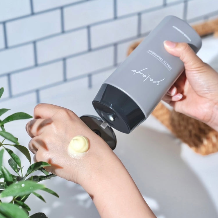 シャンプー後、髪の水気を取り、適量を手に取り毛先から髪全体に馴染ませます。その後、お湯またはぬるま湯でよくすすいでください。